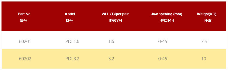 .額定載荷是指吊鉗成對使用、吊點夾具為60度時允許起吊的最大重量,吊裝作業(yè)中兩只或4只配套成組使用