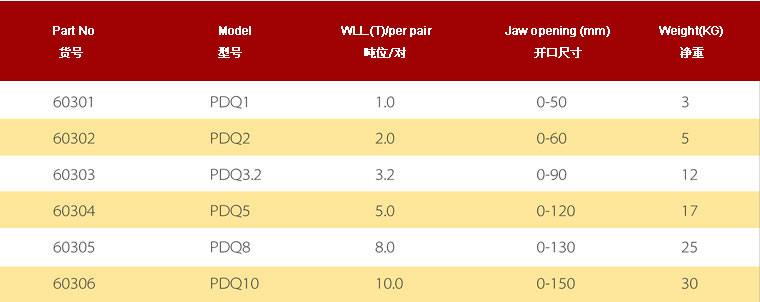 .額定載荷是指吊鉗成對使用、吊點夾具為60度時允許起吊的最大重量,吊裝作業(yè)中4只配套使用